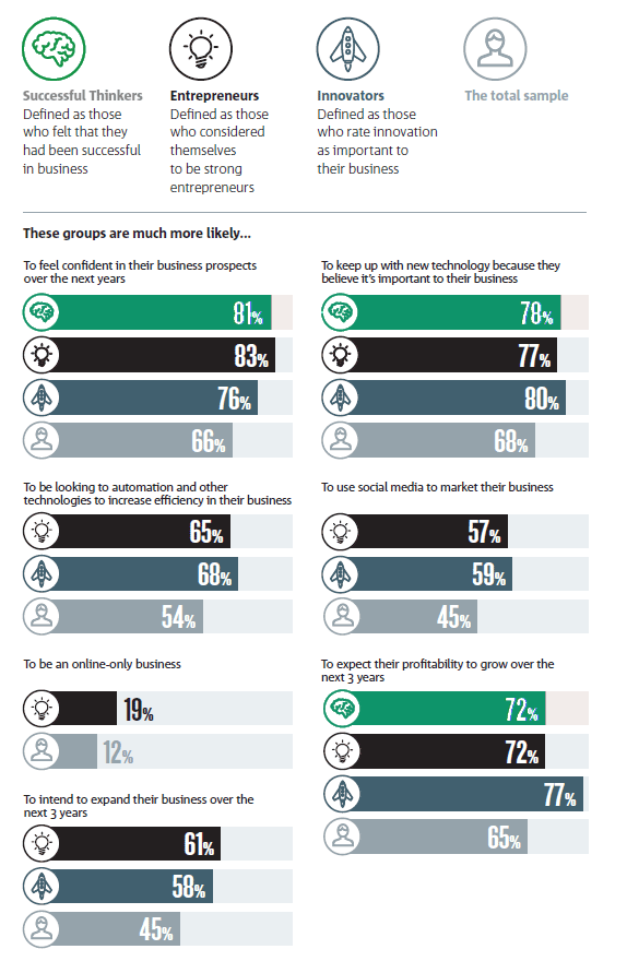 This appears to be strongly correlated to their broader outlook on life since 86% of those who feel successful in business also feel successful in life in general (compared to 75% of the total).
